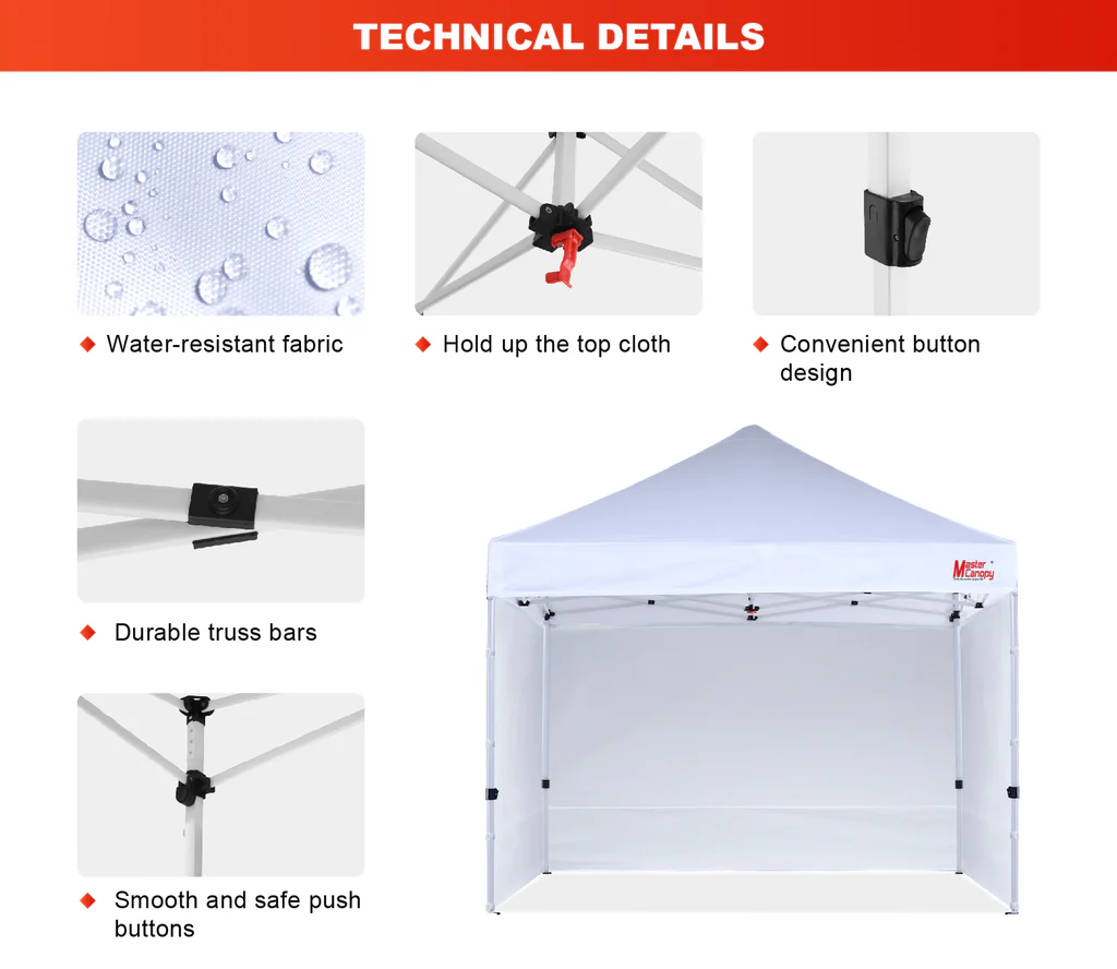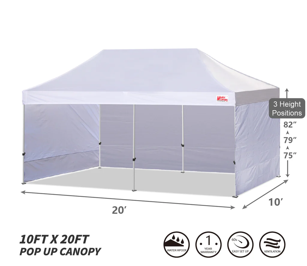Bring the Master Canopy popup canopy tent to your next outdoor event for reliable shelter, versatile functionality, and plenty of space to enjoy with friends or family. Whether it’s a marketplace offering or a personal backyard gathering, this canopy is your go-to solution for a stylish, sturdy, and spacious addition to your event setup.