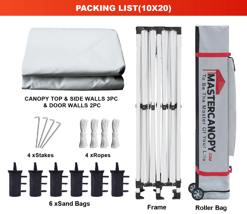 With its impressive 10 x 20-foot size and straight legs, the Master Canopy popup tent provides 150 square feet of shaded area, making it perfect for accommodating 6-10 people comfortably. The center height reaches an exceptional 132 inches, offering ample headroom and a large space for your activities and decorations. Whether for sunny or rainy days, this commercial-grade tent is built for convenience and comfort.