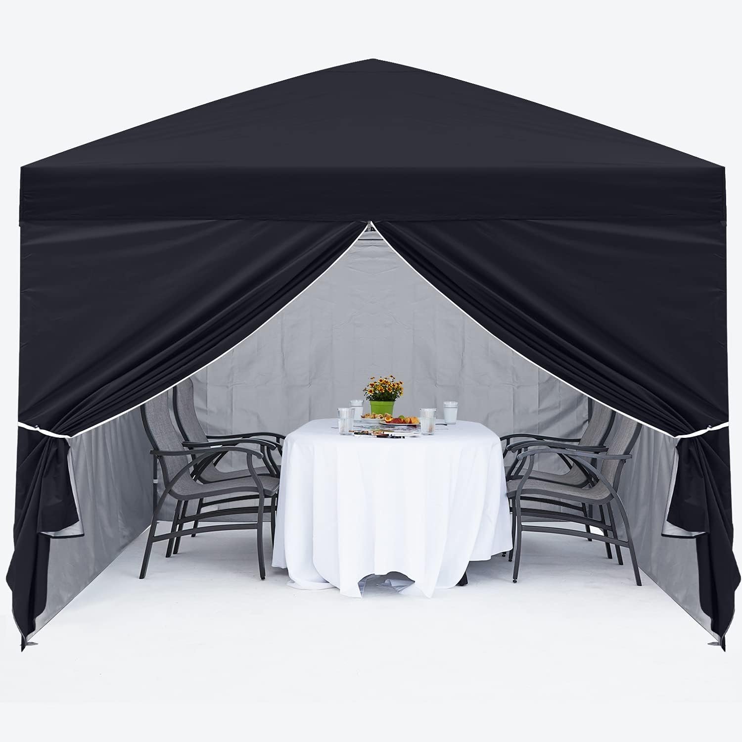MASTERCANOPY Pop Up Canopy Tent 10×10 with Church Window Sidewalls, Black